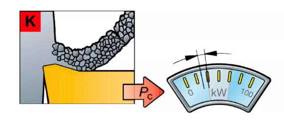通常是連續(xù)的、紅光熾熱的切屑。這種高溫有助于降低kc1值,對(duì)于幫助解決應(yīng)用難題很重要。
